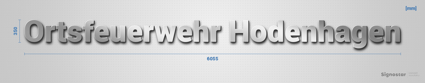Schriftzug "Ortsfeuerwehr Hodenhagen" in Schriftart "Sans", Edelstahl V2A spiegelpoliert - hochwerti