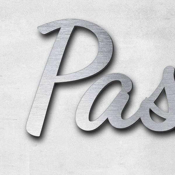 Schriftzug "Pasta to go", Acryl-Kunststoff in Edelstahl-Optik gebürstet - hochwertig & wetterbeständ