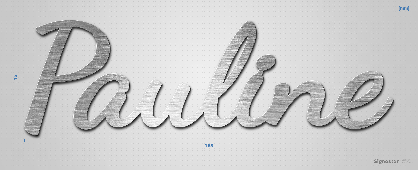 Hochwertiger, witterungsbeständiger Schriftzug "Pauline" aus gebürstetem Edelstahl V4A (1.4571)