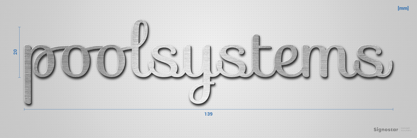 Schriftzug "poolsystems" in Schriftart "Autumna", Edelstahl V4A gebürstet - hochwertig & wetterbestä