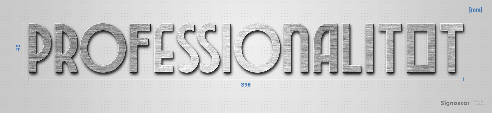 Hochwertiger, witterungsbeständiger Schriftzug "Professionalität" aus gebürstetem Edelstahl V2A (1.4301)