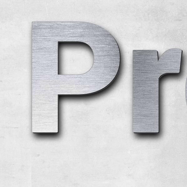 Hochwertiger, witterungsbeständiger Schriftzug "Provinzial" aus Acryl-Kunststoff mit Oberfläche in Edelstahl-Optik, gebürstet