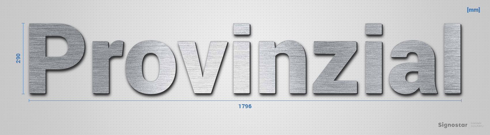 Schriftzug "Provinzial", Acryl-Kunststoff in Edelstahl-Optik gebürstet - hochwertig & wetterbeständi