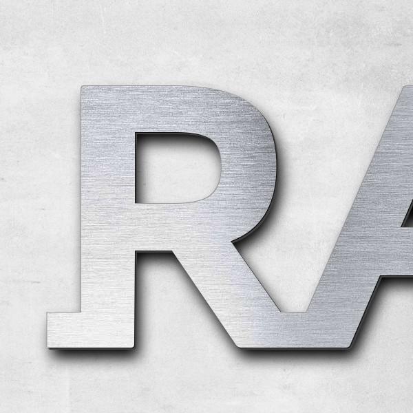 Schriftzug "Radka & Miro Pistek" in Schriftart "Baseline", Acryl-Kunststoff in Edelstahl-Optik gebür