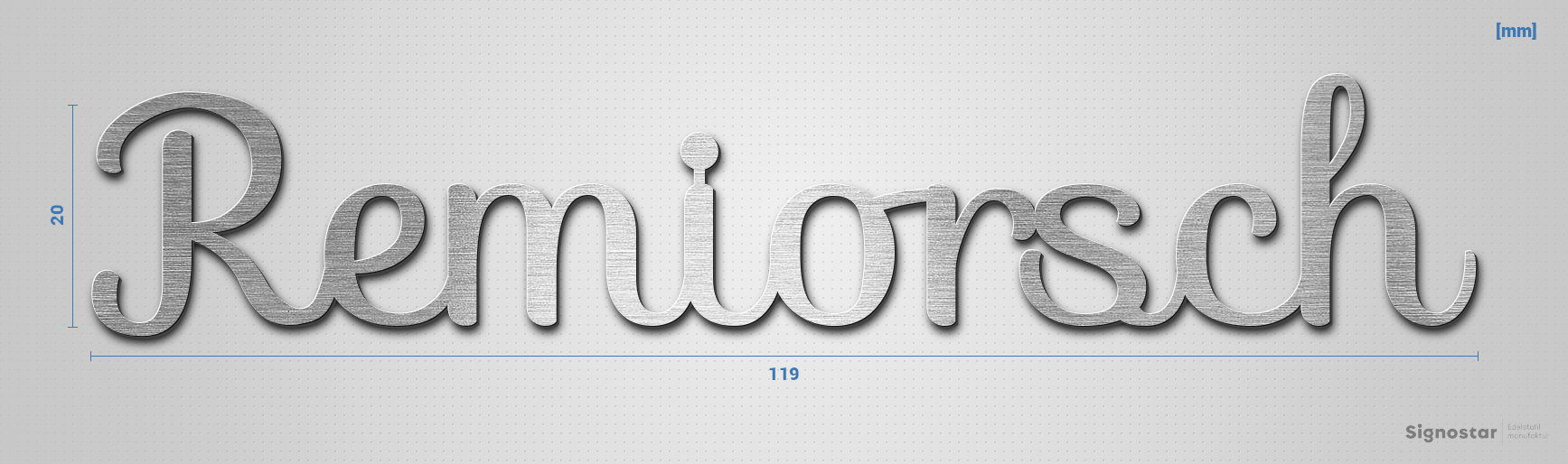 Schriftzug "Remiorsch" in Schriftart "Autumna", Edelstahl V2A gebürstet - hochwertig & wetterbeständ