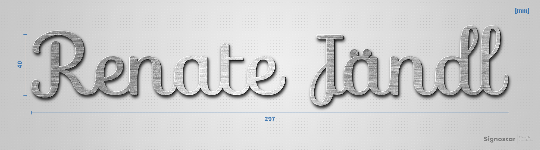 Schriftzug "Renate Jändl" in Schriftart "Autumna", Edelstahl V2A gebürstet - hochwertig & wetterbest