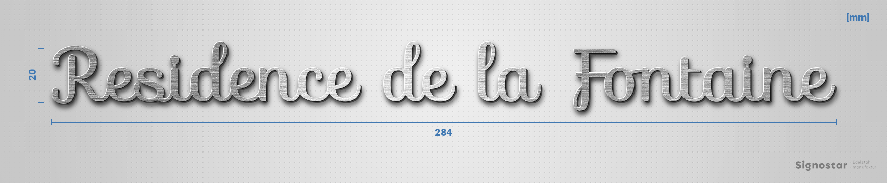 Schriftzug "Residence de la Fontaine" in Schriftart "Autumna", Edelstahl V2A gebürstet - hochwertig