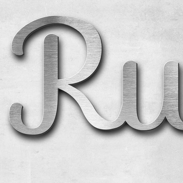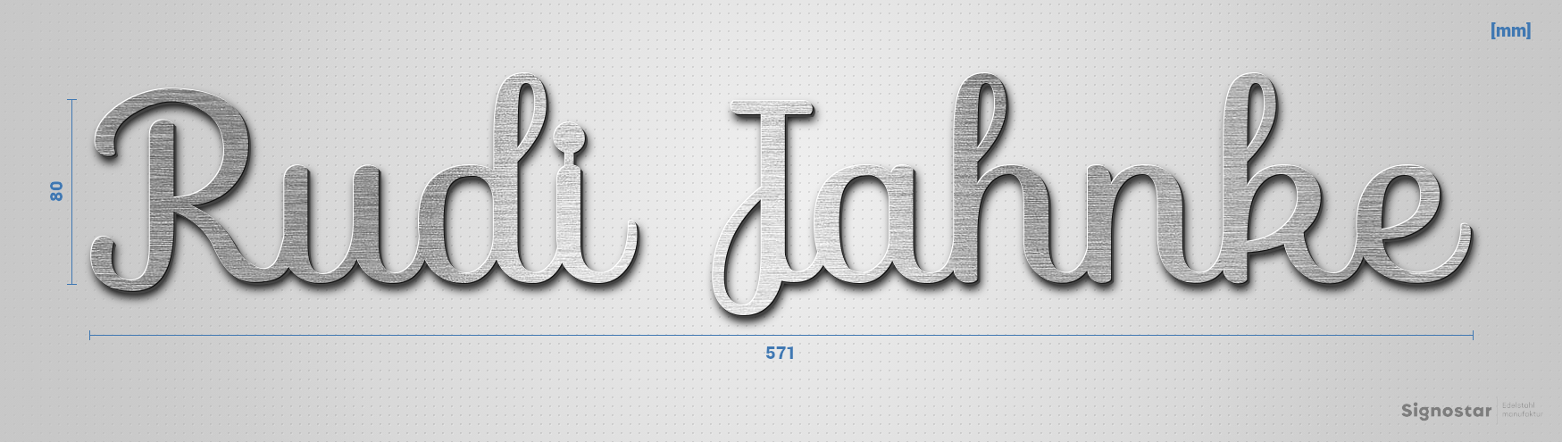 Schriftzug "Rudi Jahnke" in Schriftart "Autumna", Edelstahl V2A gebürstet - hochwertig & wetterbestä