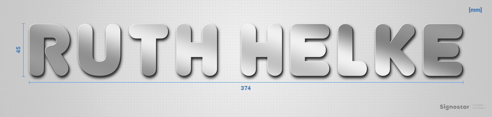 Schriftzug "Ruth Helke" in Schriftart "Capital", Edelstahl V2A spiegelpoliert - hochwertig & wetterb