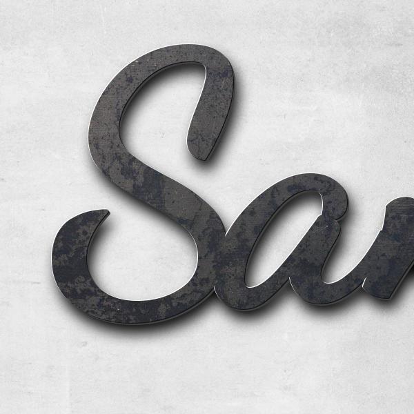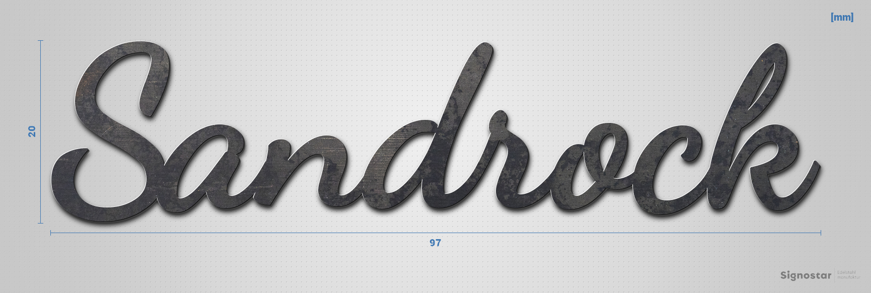 Schriftzug "Sandrock" in Schriftart "Filigrano", Cortenstahl unbehandelt - hochwertig & wetterbestän