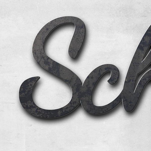 Schriftzüge bis zu einer Breite von 80cm stellen wir aus Edelstahl mit einer Materialstärke von 2mm her. Für größere Schriftzüge verwenden wir 3mm dicken Edelstahl. Auf Wunsch fertigen wir auch kleinere Schriftzüge mit einer Materialstärke von 3mm an.