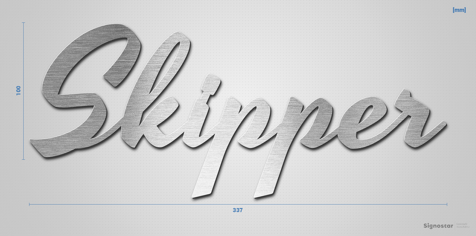 Hochwertiger, witterungsbeständiger Schriftzug "Skipper" aus gebürstetem Edelstahl V2A (1.4301)