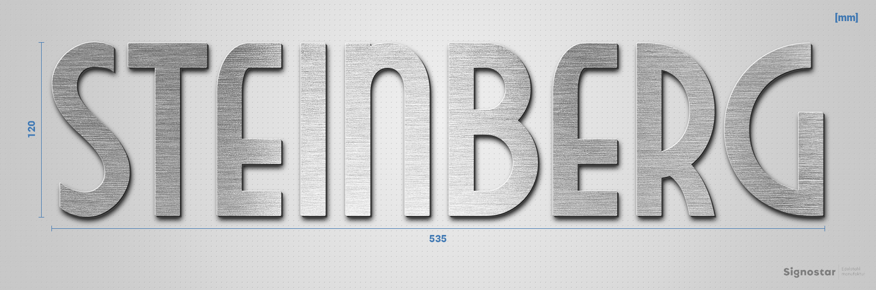 Schriftzug "Steinberg" in Schriftart "Style 25", Edelstahl V2A gebürstet - hochwertig & wetterbeständig