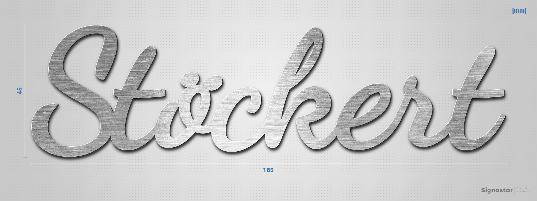 Schriftzug "Stöckert" in Schriftart "Filigrano", Edelstahl V4A gebürstet - hochwertig & wetterbestän