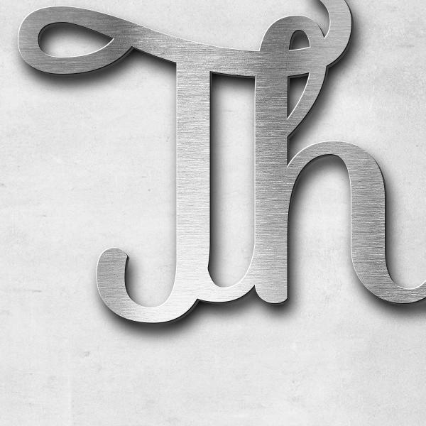 Schriftzüge bis zu einer Breite von 80cm stellen wir aus Edelstahl mit einer Materialstärke von 2mm her. Für größere Schriftzüge verwenden wir 3mm dicken Edelstahl. Auf Wunsch fertigen wir auch kleinere Schriftzüge mit einer Materialstärke von 3mm an.