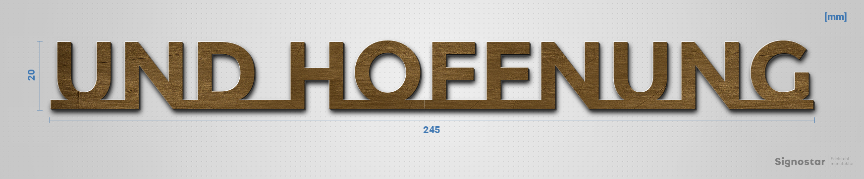 Hochwertiger, witterungsbeständiger Schriftzug "und Hoffnung" aus gebürstetem Messing