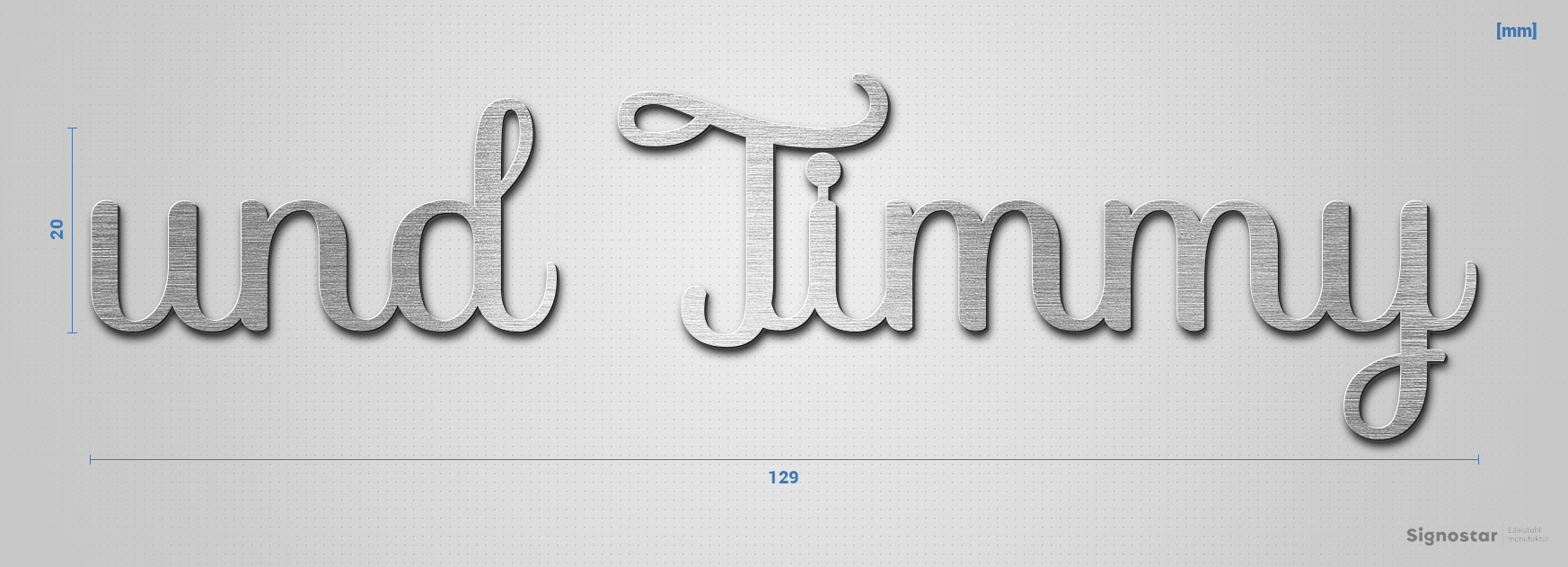 Schriftzug "und Timmy" in Schriftart "Autumna", Edelstahl V2A gebürstet - hochwertig & wetterbeständ