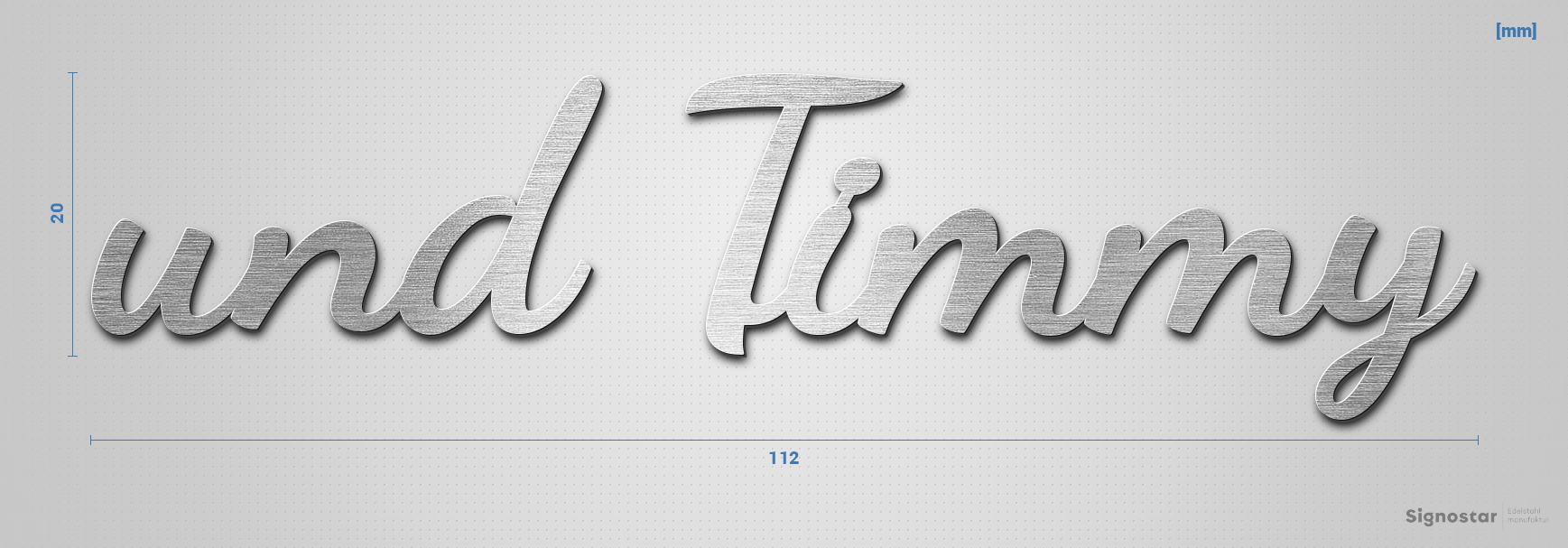 Schriftzug "und Timmy" in Schriftart "Filigrano", Edelstahl V2A gebürstet - hochwertig & wetterbestä