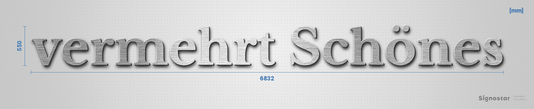 Schriftzug "vermehrt Schönes" in Schriftart "Serif", Edelstahl V2A gebürstet - hochwertig & wetterbe