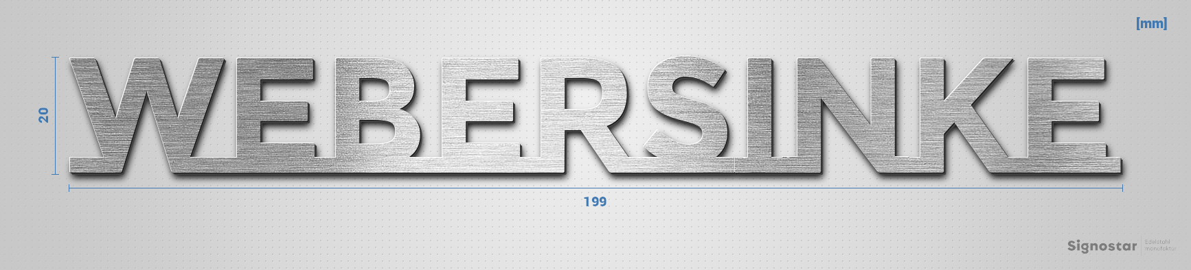 Schriftzug "WEBERSINKE" in Schriftart "Baseline", Edelstahl V2A gebürstet - hochwertig & wetterbestä