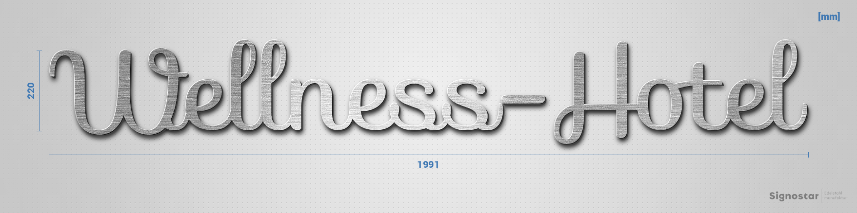 Schriftzug "Wellness-Hotel" in Schriftart "Autumna", Edelstahl V2A gebürstet - hochwertig & wetterbe