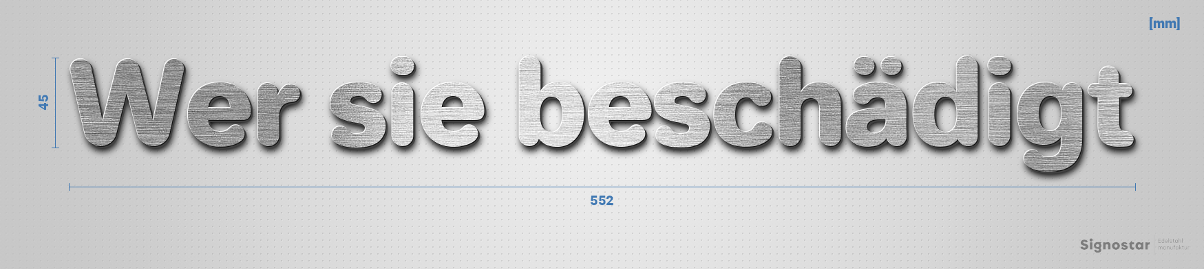 Schriftzug "Wer sie beschädigt" in Schriftart "Classic", Edelstahl V2A gebürstet - hochwertig & wett