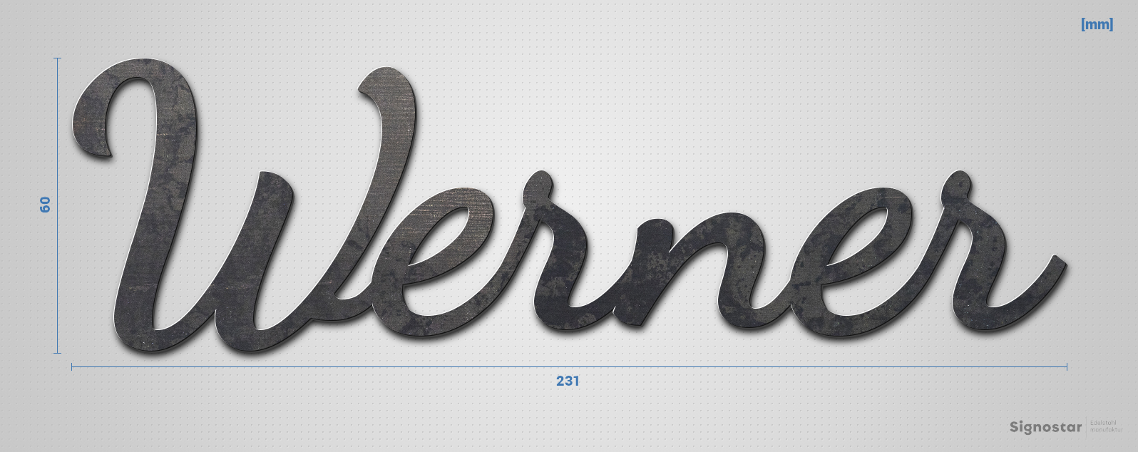 Schriftzug "Werner" in Schriftart "Filigrano", Cortenstahl unbehandelt - hochwertig & wetterbeständi