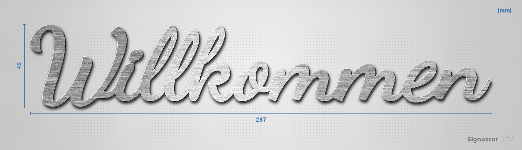 Hochwertiger, witterungsbeständiger Schriftzug "Willkommen" aus gebürstetem Edelstahl V2A (1.4301)