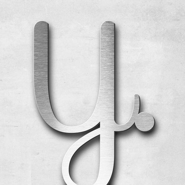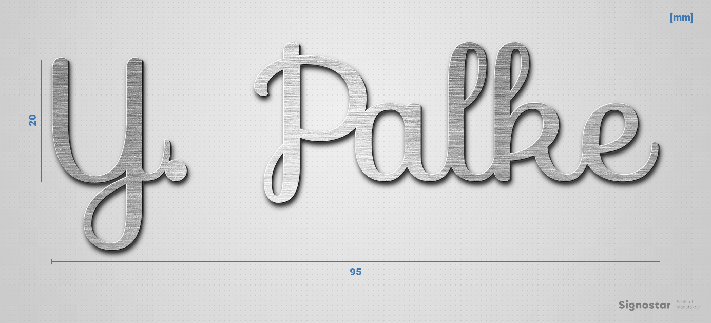 Schriftzug "Y. Palke" in Schriftart "Autumna", Edelstahl V4A gebürstet - hochwertig & wetterbeständi