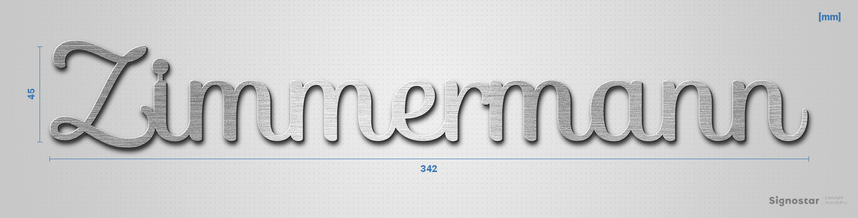 Schriftzug "Zimmermann" in Schriftart "Autumna", Edelstahl V2A gebürstet - hochwertig & wetterbestän
