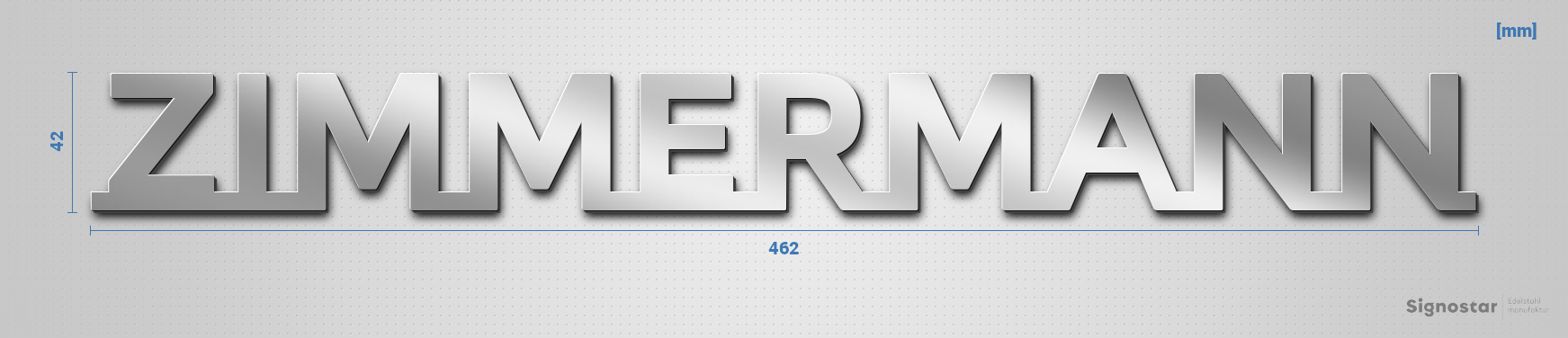 Schriftzug "Zimmermann" in Schriftart "Baseline", Edelstahl V2A spiegelpoliert - hochwertig & wetter